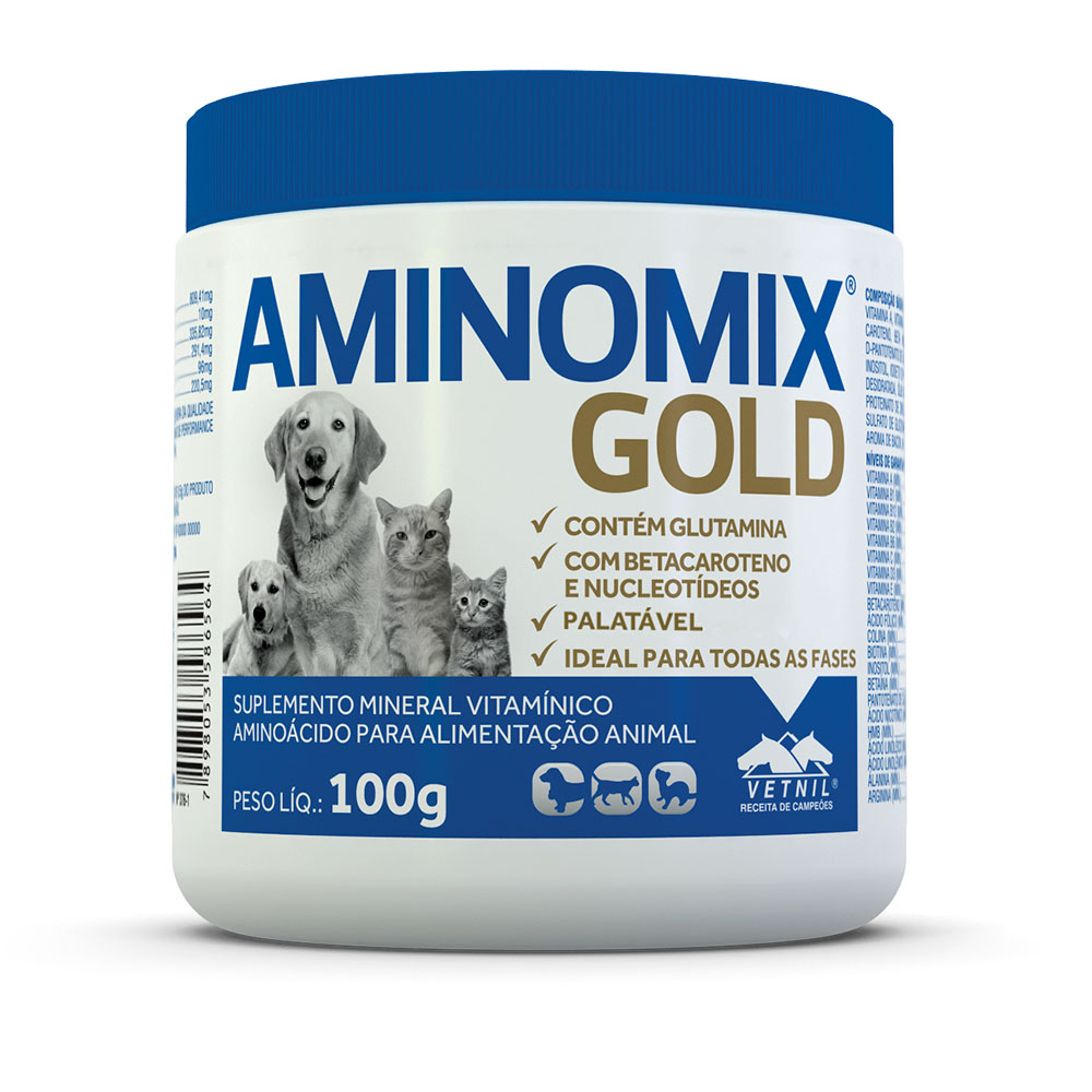 Ácido fólico, ácido nicotínico, aditivo prebiótico, aditivo probiótico, vitamina a, vitamina b1, vitamina b12, vitamina b2, vitamina b6, vitamina c, vitamina d3, vitamina e, beta caroteno, beta hidroxi metil butirato – hmb, betaína, biotina, cloreto de colina pó, d-pantotenato de cálcio, dl-metionina, enxofre ventilado (flor de enxofre), hexametafosfato de sódio, inositol, iodeto de potássio, l-carnitina, l-glutamina, l-lisina, levedura de cana de açúcar, inativada e desidratada, óleo de linhaça, proteína isolada de soja, proteinato de cobre, proteinato de ferro, proteinato de zinco, selenito de sódio, sulfato de cobalto heptahidratado, sulfato de condroitina, sulfato de glicosamina, sulfato de magnésio, sulfato de manganês, taurina, zeolita, amido de milho, aroma de bacon, b.h.t. (hidróxido de tolueno butilado), dióxido de silício.
