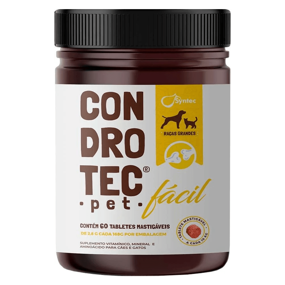 Condrotec Fácil 2,8 G possui fórmula completa de nutrientes vitamínicos, minerais e aminoácidos que desencadeiam um suporte essencial para a saúde das articulações, fundamental em todas as fases da vida dos animais. Seja para filhotes em crescimento ou para os mais experientes, esse suplemento proporciona os elementos necessários para manter a saúde e a mobilidade das articulações, garantindo uma vida ativa e confortável para o seu pet.