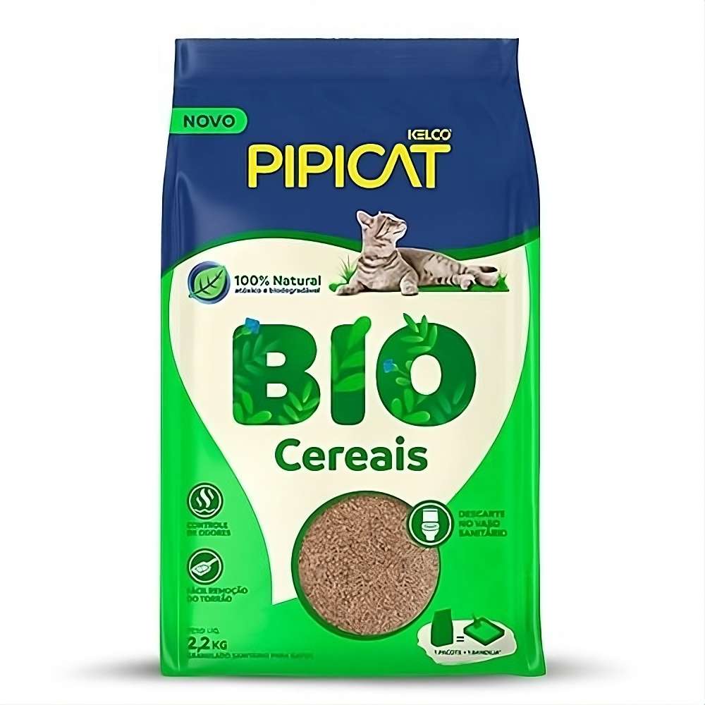 Pipicat Bio é um novo granulado sanitário 100% biodegradável, natural e atóxico para o seu gatinho com toda qualidade Pipicat. É feito com um mix de cereais que formam torrões firmes que facilitam a limpeza e o descarte no vaso sanitário, além de ser um produto leve e de fácil manuseio.