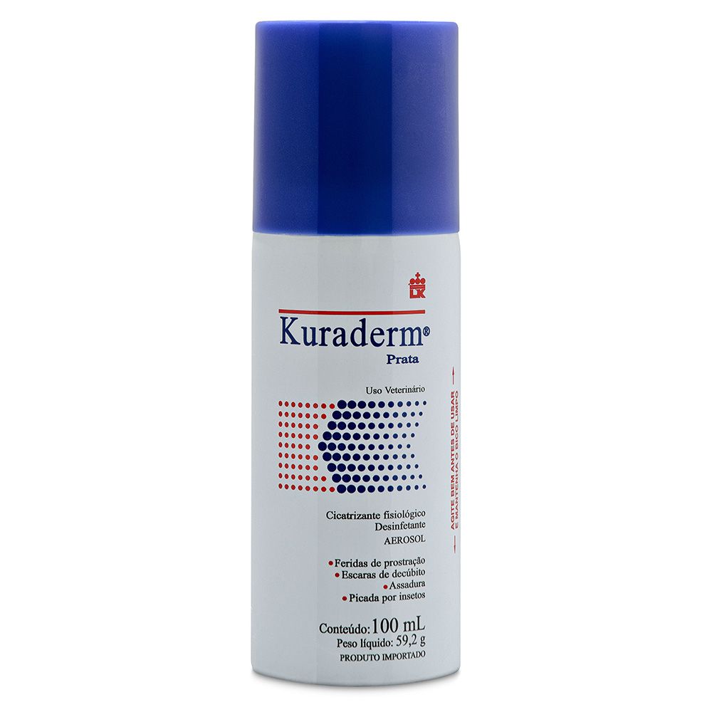 Kuraderm é um cicatrizante potente com ação antibiótica para cães e gatos. Possui cristais de alumínio micronizados que ventilam e formam uma película protetora promovendo uma cicatrização mais rápida. É indicado para cicatrização por segunda intenção, escaras de decúbito, picadas de inseto, queimaduras, pós cirúrgico e feridas em geral.
