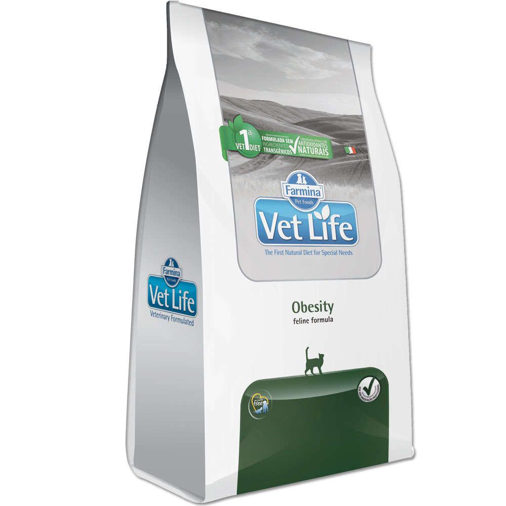 Ração Farmina Vet Life Natural Obesity é um alimento coadjuvante seco indicado para gatos adultos para redução do excesso de peso corporal. A densidade energética reduzida e o elevado teor de fibras tornam Vet Life Natural Feline Obesity indicado para o controle da obesidade.