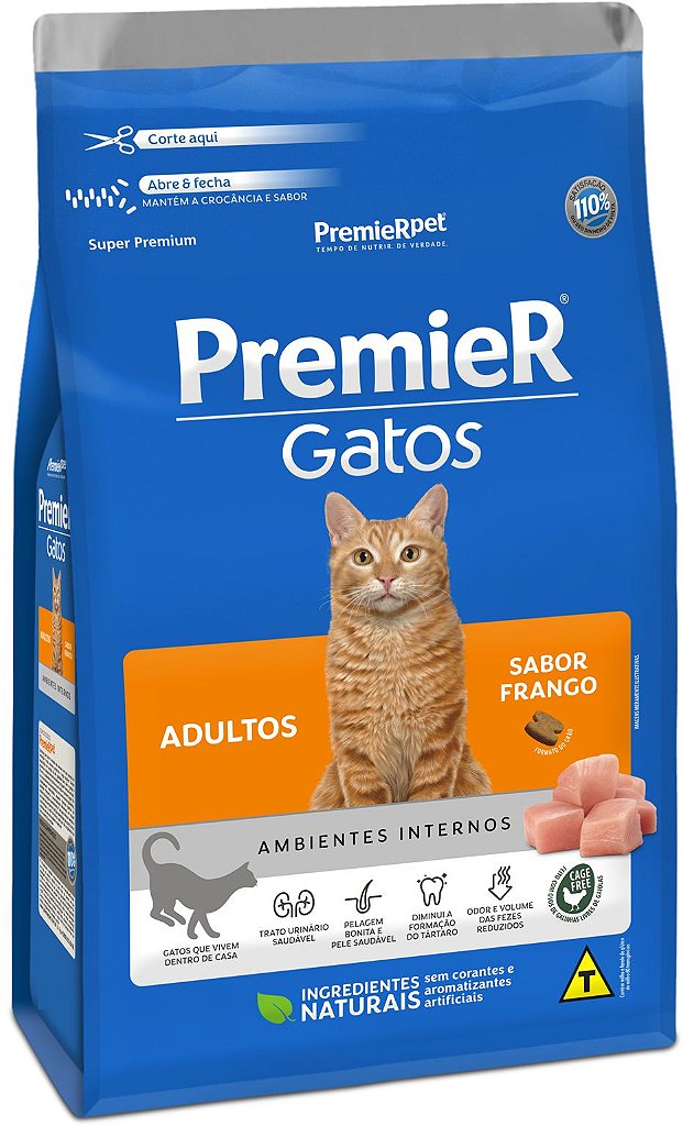 Ração Premier Ambientes Internos Para Gatos Adultos Sabor Frango