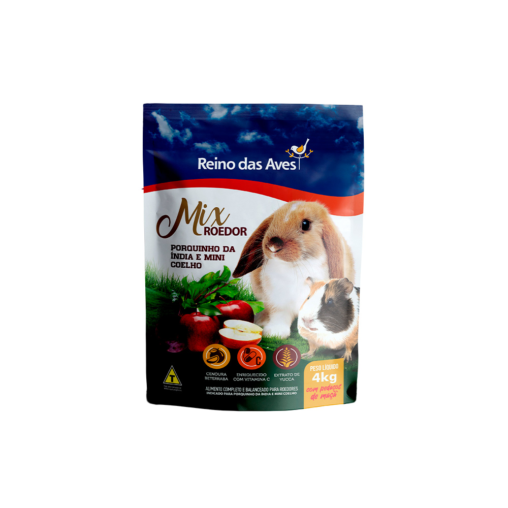 - Alimento completo e balanceado para porquinho da índia e mini coelho;