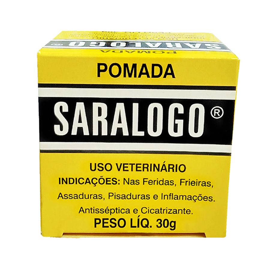 - Pomada cicatrizante que atua sobre as feridas, contra as assaduras, pisaduras e inflamações provocadas na pele dos animais, aplicando uma leve camada de Saralogo sobre as partes atacadas.